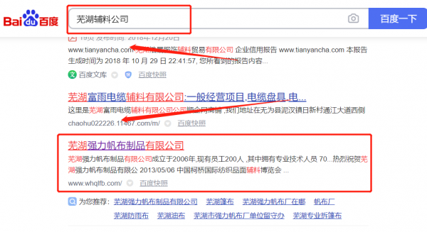 蕪湖*力帆布制品有限公司網(wǎng)絡(luò)營銷最快上詞效果展示