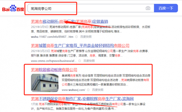 蕪湖皖*移動(dòng)板房有限公司選用我司企業(yè)崗?fù)さ木W(wǎng)站優(yōu)化產(chǎn)品,其SEO關(guān)鍵詞有崗?fù)ぁ<?對(duì)1的定制解決方案,篩選的關(guān)鍵字40-60天就能排名上去。若沒有達(dá)到效果,除服務(wù)費(fèi)全部退還,讓企業(yè)無后顧之憂。蕪湖皖*移動(dòng)板房有限公司成立于2016年,是經(jīng)蕪湖市市場(chǎng)監(jiān)督管理局審核的有資質(zhì)的公司,其統(tǒng)一社會(huì)信用代碼:91340207M**N0TP42Q。公司地址:安徽省蕪湖市鳩江區(qū)長(zhǎng)江市場(chǎng)園A區(qū)13幢1047號(hào)。
