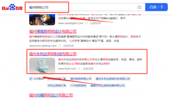 福州永*達(dá)照明科技有限公司SEO推廣保證在首頁效果