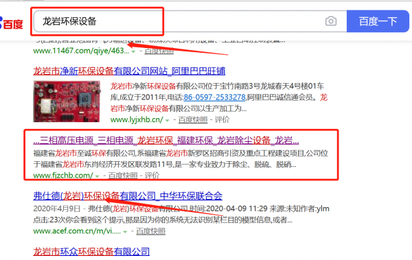 我們公司與福建省龍巖市*誠環(huán)保有限公司合作中,對這個公司所經(jīng)營的環(huán)保設(shè)備這個行業(yè)提供了百度快照排名,與該公司的合作,更多的客戶讓我們公司為其提供百度快照排名,通過每一次合作,我們公司不斷完善自己,同時希望合作伙伴在經(jīng)營的路上越來越好。