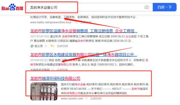 龍巖市瑞*環(huán)保科技有限公司選用我司企業(yè)凈水設(shè)備的網(wǎng)站優(yōu)化產(chǎn)品,其SEO關(guān)鍵詞有凈水設(shè)備。為用戶分析百度、360等SEO優(yōu)化數(shù)據(jù),可全站委托關(guān)鍵詞SEO優(yōu)化外包,在投入成本最小化的同時(shí)實(shí)現(xiàn)客戶利益的最大化。龍巖市瑞*環(huán)保科技有限公司成立于2013年,是經(jīng)龍巖市市場(chǎng)監(jiān)督管理局審核的有資質(zhì)的公司,其統(tǒng)一社會(huì)信用代碼:913508000**236911M。公司地址:福建省龍巖市新羅區(qū)東肖鎮(zhèn)曲潭路15號(hào)孵化大樓3樓301#(龍巖經(jīng)濟(jì)技術(shù)開發(fā)區(qū))。