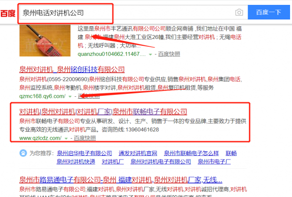 我們公司與泉州市聯(lián)暢電子有限公司合作中,對(duì)這個(gè)公司所經(jīng)營(yíng)的電話對(duì)講機(jī)這個(gè)行業(yè)提供了關(guān)鍵詞搜索排名,與該公司的合作,更多的客戶讓我們公司為其提供關(guān)鍵詞搜索排名,通過(guò)每一次合作,我們公司不斷完善自己,同時(shí)希望合作伙伴在經(jīng)營(yíng)的路上越來(lái)越好。