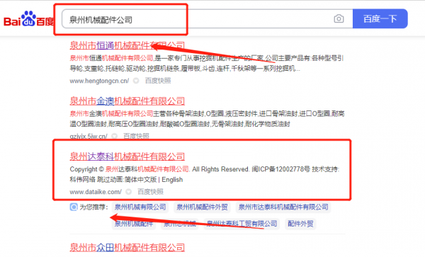 泉州達(dá)*科機(jī)械配件有限公司新站排名保證在首頁(yè)效果
