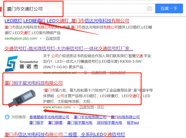 我們公司與廈門恒宇星光電科技有限公司合作中,對這個公司所經(jīng)營的交通燈這個行業(yè)提供了百度快照排名,與該公司的合作,更多的客戶讓我們公司為其提供百度快照排名,通過每一次合作,我們公司不斷完善自己,同時希望合作伙伴在經(jīng)營的路上越來越好。