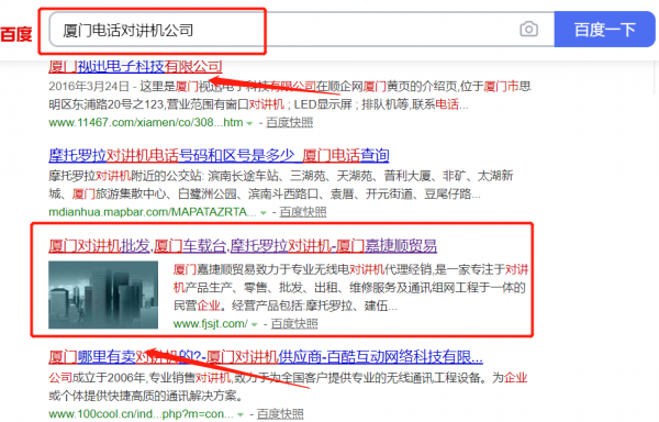 我們公司與廈門*捷順貿(mào)易有限公司合作中,對這個公司所經(jīng)營的電話對講機這個行業(yè)提供了網(wǎng)站排名,與該公司的合作,更多的客戶讓我們公司為其提供SEO網(wǎng)站優(yōu)化,通過每一次合作,我們公司不斷完善自己,同時希望合作伙伴在經(jīng)營的路上越來越好。