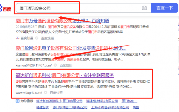 福達(dá)*創(chuàng)通訊科技(廈門)有限公司百度排名最快上詞效果展示