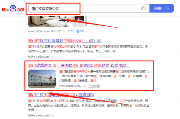 廈門銘*膜裝飾有限公司關(guān)鍵詞推廣到首頁按天扣費(fèi)
