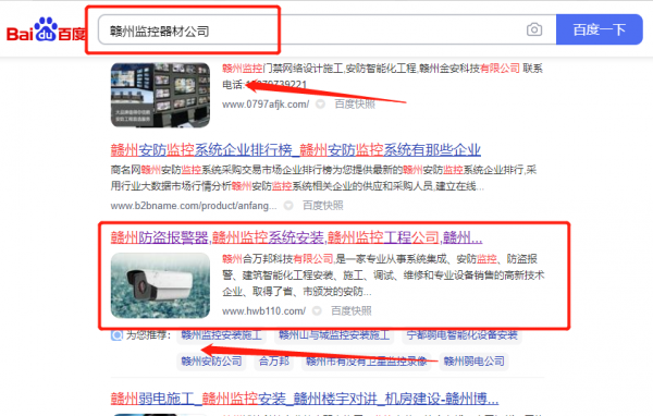 贛州合*邦科技有限公司選用我司企業(yè)監(jiān)控器材的網(wǎng)站優(yōu)化產(chǎn)品,其SEO關(guān)鍵詞有監(jiān)控器材。無論你關(guān)鍵詞是在20名內(nèi)、30名內(nèi)、還是50名內(nèi)。我們都可以在最短時間優(yōu)化至搜索引擎的首頁。提供后臺管理,排名查詢、關(guān)鍵詞管理、財務(wù)扣費一目了然,一鍵操作。贛州合*邦科技有限公司成立于2016年,是經(jīng)贛州市市場監(jiān)督管理局審核的有資質(zhì)的公司,其統(tǒng)一社會信用代碼:91360702M**5GB8137。公司地址:江西省贛州市章貢區(qū)楊公路1號“金樽花園”10棟7號車庫。