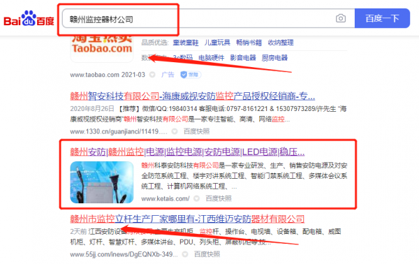 贛州科*安防科技有限公司選用我司企業(yè)監(jiān)控器材的網(wǎng)站優(yōu)化產(chǎn)品,其SEO關(guān)鍵詞有監(jiān)控器材。無論你關(guān)鍵詞是在20名內(nèi)、30名內(nèi)、還是50名內(nèi)。我們都可以在最短時間優(yōu)化至搜索引擎的首頁。提供后臺管理,排名查詢、關(guān)鍵詞管理、財務(wù)扣費一目了然,一鍵操作。贛州科*安防科技有限公司成立于2010年,是經(jīng)贛州市市場監(jiān)督管理局審核的有資質(zhì)的公司,其統(tǒng)一社會信用代碼:9136070055**24681N。公司地址:江西省贛州市章貢區(qū)八一四大道二號三層G38。