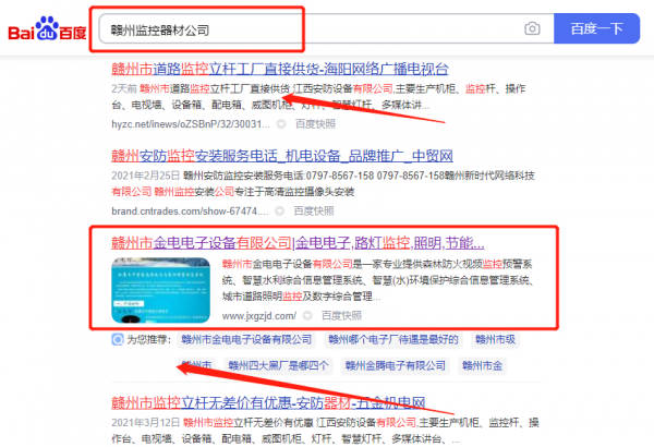 我們公司與贛州市*電電子設(shè)備有限公司合作中,對這個公司所經(jīng)營的監(jiān)控器材這個行業(yè)提供了網(wǎng)絡(luò)推廣,與該公司的合作,更多的客戶讓我們公司為其提供SEO推廣,通過每一次合作,我們公司不斷完善自己,同時希望合作伙伴在經(jīng)營的路上越來越好。