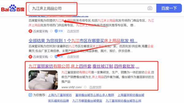 九江富*家紡有限公司網(wǎng)站排名排名效果展示