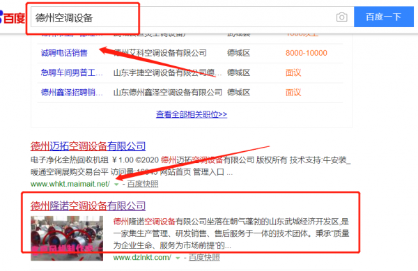 我們公司與德州隆諾空調(diào)設(shè)備有限公司合作中,對(duì)這個(gè)公司所經(jīng)營的空調(diào)設(shè)備這個(gè)行業(yè)提供了快速排名,與該公司的合作,更多的客戶讓我們公司為其提供快速排名,通過每一次合作,我們公司不斷完善自己,同時(shí)希望合作伙伴在經(jīng)營的路上越來越好。