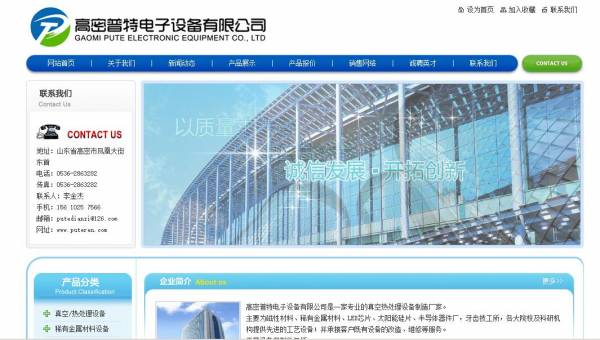 高密普特電子設(shè)備有限公司選用我司企業(yè)電子標(biāo)簽行業(yè)的網(wǎng)站優(yōu)化產(chǎn)品,其SEO關(guān)鍵詞有真空/熱處理設(shè)備,稀有金屬材料設(shè)備,光伏/集成電路工藝設(shè)備,爐體系列,高密普特電子設(shè)備有限公司。其特點是用很合適的展示方式、展示效果、站點框架,把客戶及其用戶很關(guān)心的問題突出表現(xiàn);并以簡潔明朗的設(shè)計風(fēng)格,清晰展現(xiàn)公司水平實力,確保一秒抓住目標(biāo)用戶眼球,給用戶留下良好的第一印象。高密普特電子設(shè)備有限公司成立于2014年,是經(jīng)高密市市場監(jiān)督管理局審核的有資質(zhì)的公司,其統(tǒng)一社會信用代碼:9137078509448528X2。公司地址:山東省高密市鳳凰大街東首。