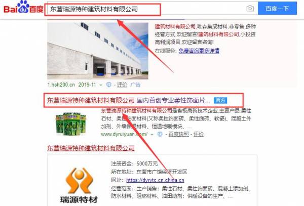 東營瑞源特種建筑材料有限公司和我公司簽訂百度快照排名項(xiàng)目