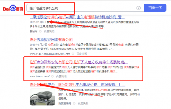 臨沂庫(kù)*智能安防有限公司選用我司企業(yè)電話對(duì)講機(jī)行業(yè)的網(wǎng)站優(yōu)化產(chǎn)品,其SEO關(guān)鍵詞有電話對(duì)講機(jī)。利用全新的SEO技術(shù),在短時(shí)間內(nèi)使關(guān)鍵詞占領(lǐng)搜索引擎首頁(yè),為企業(yè)官網(wǎng)獲取更多更精準(zhǔn)的流量。大數(shù)據(jù)分析,針對(duì)性定位,推廣,專屬定制最適合您,效果最全面的的推廣方案,更有效果保證!臨沂庫(kù)*智能安防有限公司成立于2005年,是經(jīng)臨沂市市場(chǎng)監(jiān)督管理局審核的有資質(zhì)的公司,其統(tǒng)一社會(huì)信用代碼:91371301**8423410X。公司地址:山東省臨沂市蘭山區(qū)華強(qiáng)科技城3108。
