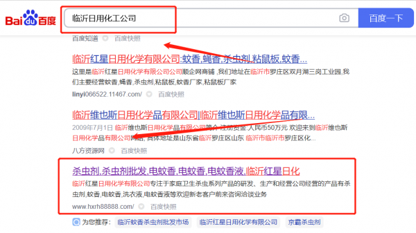 臨沂紅*日用化學(xué)有限公司百度關(guān)鍵詞排名案例欣賞