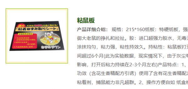 青島利雅日用化工品有限公司是一家日本獨資企業(yè),位于青島經(jīng)濟技術(shù)開發(fā)區(qū)保稅區(qū)內(nèi),于2005年投資建立。主要生產(chǎn)各種規(guī)格的粘鼠板、粘蟑螂板.粘蟲紙等小動物捕獲黏著板以及提供專業(yè)的害蟲治理服務(wù)。我公司擁有日本進口的生產(chǎn)線以及日本研發(fā)的粘鼠膠生產(chǎn)技術(shù),以生產(chǎn)能力強,質(zhì)量上乘、研發(fā)創(chuàng)新實力雄厚而著稱業(yè)界。生產(chǎn)的粘鼠板、粘蟑螂板、粘蟲紙等完全依靠物理膠粘作用捕獲和殺死老鼠、蟑螂、螞蟻等爬蟲和飛蟲,粘著性強,持久力強,是無毒、無害、無污染的具有環(huán)保特點的產(chǎn)品。本公司本著精益求精、發(fā)展創(chuàng)新的態(tài)度,沒有最好,只有更好,我們一直把能提供優(yōu)質(zhì)、高效、安全、環(huán)保的產(chǎn)品作為我們發(fā)展的目標。現(xiàn)在產(chǎn)品主要銷往日本、臺灣等地,受到國內(nèi)外客戶的一致好評,我們更注重在國內(nèi)的發(fā)展,愿為國內(nèi)廣大用戶提供安全有效的產(chǎn)品和更優(yōu)質(zhì)害蟲治理服務(wù)。同時承接品牌代加工業(yè)務(wù),我們會以最優(yōu)質(zhì)的產(chǎn)品質(zhì)量、最快捷的生產(chǎn)周期、最優(yōu)惠的加工價格,給您提供最滿意的代加工服務(wù)。選擇利雅,選擇利雅產(chǎn)品,讓您生活無憂。