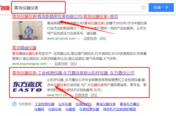 我們公司與青島東方嘉儀電子科技有限公司合作中,對這個公司所經(jīng)營的儀器儀表這個行業(yè)提供了快速排名,與該公司的合作,更多的客戶讓我們公司為其提供關(guān)鍵詞搜索排名,通過每一次合作,我們公司不斷完善自己,同時希望合作伙伴在經(jīng)營的路上越來越好。