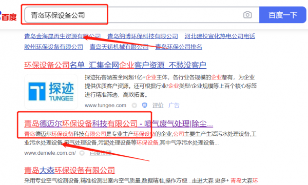 青島*邁爾環(huán)保設(shè)備科技有限公司百度排名到首頁無排名不收費