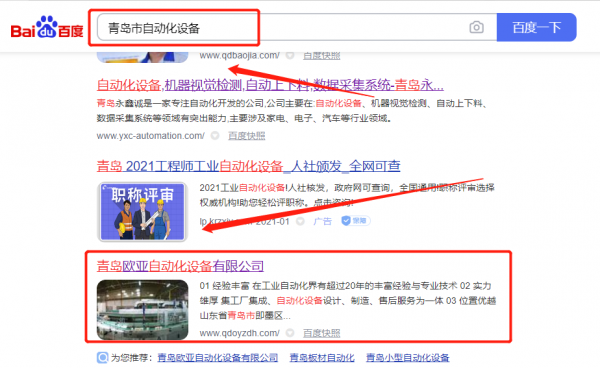 青島*亞自動化設(shè)備有限公司網(wǎng)絡(luò)推廣排名效果展示