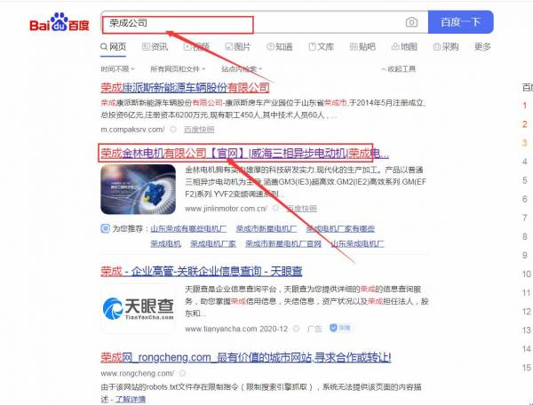榮成市金*電機(jī)有限公司網(wǎng)站優(yōu)化排名效果展示