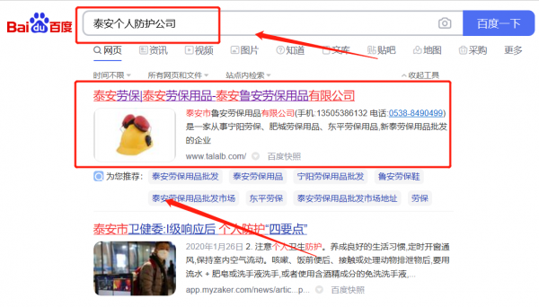 我們公司與泰安市*安勞保用品有限公司合作中,對這個(gè)公司所經(jīng)營的個(gè)人防護(hù)這個(gè)行業(yè)提供了網(wǎng)站推廣,與該公司的合作,更多的客戶讓我們公司為其提供關(guān)鍵詞搜索排名,通過每一次合作,我們公司不斷完善自己,同時(shí)希望合作伙伴在經(jīng)營的路上越來越好。