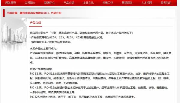 滕州中聯(lián)水泥有限公司選用我司企業(yè)化工行業(yè)的網(wǎng)站優(yōu)化產(chǎn)品,其SEO關(guān)鍵詞有 中聯(lián)水泥,滕州中聯(lián)水泥有限公司。其特點(diǎn)是用很合適的展示方式、展示效果、站點(diǎn)框架,把客戶及其用戶很關(guān)心的問題突出表現(xiàn);并以簡潔明朗的設(shè)計(jì)風(fēng)格,清晰展現(xiàn)公司水平實(shí)力,確保一秒抓住目標(biāo)用戶眼球,給用戶留下良好的第一印象。滕州中聯(lián)水泥有限公司成立于2007年,是經(jīng)滕州市市場監(jiān)督管理局審核的有資質(zhì)的公司,其統(tǒng)一社會信用代碼:91370481661963760K 。公司地址:山東省滕州市羊莊鎮(zhèn)中頂山村。