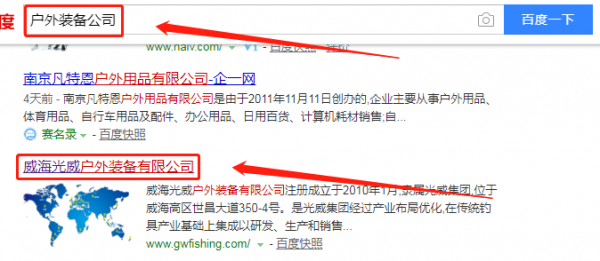 我們公司與威海光威戶外裝備有限公司合作中,對(duì)這個(gè)公司所經(jīng)營(yíng)的戶外裝備這個(gè)行業(yè)提供了百度快照排名,與改公司的合作,更多的客戶讓我們公司為其提供百度快照排名,通過每一次合作,我們公司不斷完善自己,同時(shí)希望合作伙伴在經(jīng)營(yíng)的路上越來越好。