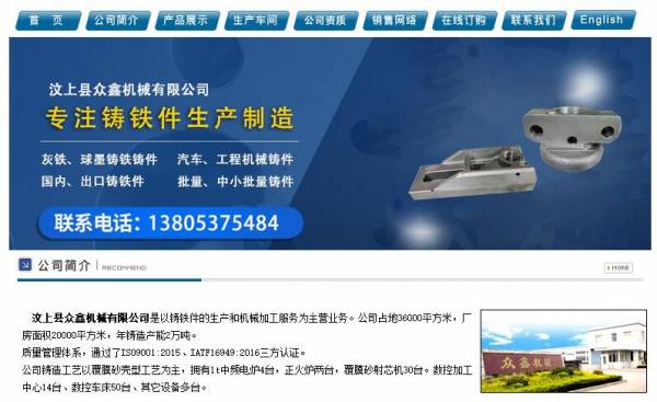 汶上縣眾*機(jī)械有限公司是以鑄鐵件的生產(chǎn)和加工為主的私營(yíng)企業(yè)(主要生產(chǎn)灰鑄鐵、球墨鑄鐵),公司擁有進(jìn)出口自營(yíng)權(quán)。公司占地3.6萬(wàn)平方米,廠房面積2萬(wàn)平方米,年鑄造能力1.2萬(wàn)噸。2006年通過(guò)ISO9000質(zhì)量管理體系認(rèn)證;2013年通過(guò)TS16949質(zhì)量管理體系認(rèn)證。