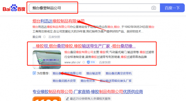 煙臺(tái)桑*橡膠有限公司網(wǎng)絡(luò)推廣快上詞效果展示