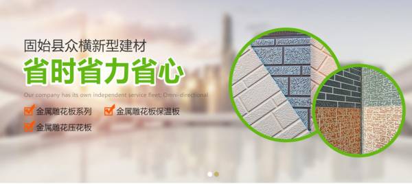 固始縣*橫新型建材有限公司的誠信、實(shí)力和產(chǎn)品質(zhì)量獲得眾多海內(nèi)外建筑商的認(rèn)可。固始縣眾橫新型建材有限公司自投放市場以來,緊跟國家《節(jié)能中長期專項(xiàng)規(guī)劃》等政策,實(shí)現(xiàn)了眾橫金屬雕花板匯聚了節(jié)能環(huán)保(聚氨酯夾芯層,PH7.0)、保溫隔熱(安裝金屬雕花板后的建筑室內(nèi)外溫差15-20攝氏度)、防火阻燃(聚氨酯硬發(fā)泡技術(shù)防火可達(dá)B1級)、防水防潮(反射玻纖鋁箔紙功效)、隔音降噪(噪聲低于37DB)、安裝便捷(比傳統(tǒng)外墻保溫材料施工效率提升300%)等優(yōu)異性能,并迅速在保溫材料市場攻城略地。固始縣眾橫新型建材有限公司金屬雕花板被廣泛應(yīng)用于居民樓、學(xué)校、醫(yī)院、辦公及商場大樓、輕鋼***、***廁所、崗?fù)ぁ?**板房等建筑物。