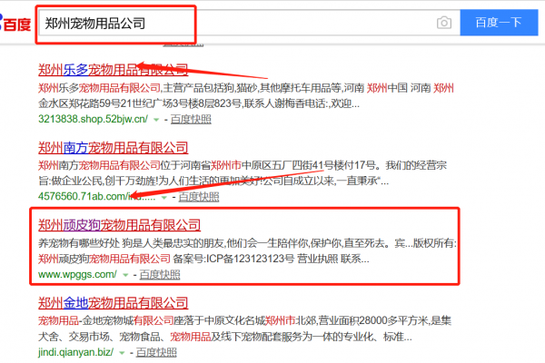 我們公司與鄭州頑皮狗寵物用品有限公司合作中,對這個公司所經營的寵物用品這個行業(yè)提供了百度快照排名,與該公司的合作,更多的客戶讓我們公司為其提供百度快照排名,通過每一次合作,我們公司不斷完善自己,同時希望合作伙伴在經營的路上越來越好。
