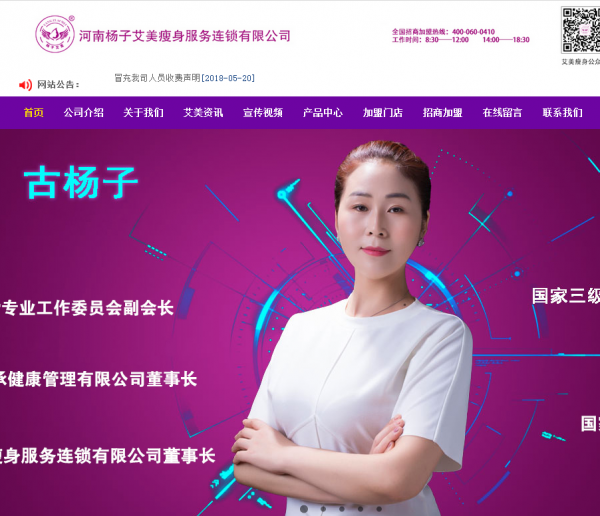 河南楊*艾美瘦身服務(wù)連鎖有限公司選用我司企業(yè)網(wǎng)站設(shè)計(jì)優(yōu)化產(chǎn)品,其seo關(guān)鍵詞為瘦身,美容,定制有針對性的SEO優(yōu)化執(zhí)行方案,根據(jù)盈利模式和核心產(chǎn)品選擇更適合的精準(zhǔn)關(guān)鍵詞。配備專業(yè)SEO優(yōu)化團(tuán)隊(duì),項(xiàng)目前期做好市場、企業(yè)定位、目標(biāo)用戶、盈利模式分析河南楊*艾美瘦身服務(wù)連鎖有限公司成立于2015年,是經(jīng)河南市場監(jiān)督管理局審核的有資質(zhì)的公司,其統(tǒng)一社會信用代碼: 91410**105MA3X4JP13E 。公司地址:河南省鄭州市金水區(qū)北三環(huán)文化路瀚海北金B(yǎng)座6017。