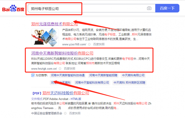 我們公司與河南*天高新智能科技股份有限公司合作中,對(duì)這個(gè)公司所經(jīng)營(yíng)的電子標(biāo)簽這個(gè)行業(yè)提供了萬(wàn)詞霸屏,與該公司的合作,更多的客戶(hù)讓我們公司為其提供關(guān)鍵詞搜索排名,通過(guò)每一次合作,我們公司不斷完善自己,同時(shí)希望合作伙伴在經(jīng)營(yíng)的路上越來(lái)越好。