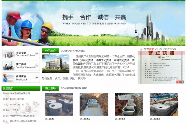 鄂州*洋水泥制品有限公司選用我司企業(yè)建筑建材行業(yè)的網(wǎng)站優(yōu)化產(chǎn)品,其SEO關(guān)鍵詞有 武漢化糞池,武漢預(yù)制化糞池,鋼筋混凝土化糞池,鋼筋組合式化糞池,武漢成品化糞池,鄂州化糞池,鄂州預(yù)制化糞池,黃石化糞池,黃石預(yù)制化糞池,黃岡化糞池,黃岡預(yù)制化糞池。其特點是用很合適的展示方式、展示效果、站點框架,把客戶及其用戶很關(guān)心的問題突出表現(xiàn);并以簡潔明朗的設(shè)計風(fēng)格,清晰展現(xiàn)公司水平實力,確保一秒抓住目標(biāo)用戶眼球,給用戶留下良好的第一印象。鄂州*洋水泥制品有限公司成立于2013年,是經(jīng)鄂州市市場監(jiān)督管理局審核的有資質(zhì)的公司,其統(tǒng)一社會信用代碼:9142070006352**384。公司地址:鄂州市蒲團鄉(xiāng)橫山村。