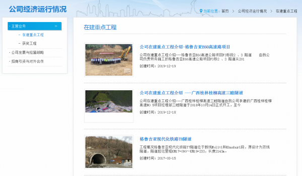 公司自創(chuàng)立起始終堅(jiān)持“建一個(gè)工程,樹一個(gè)品牌”的質(zhì)量管理理念和“以人為本,安全第一”的安全生產(chǎn)理念,把工作貫穿到工程施工的每一個(gè)細(xì)節(jié),做到制度健全、組織有序、措施到位。憑借豐富的工程施工經(jīng)驗(yàn)和專業(yè)的技術(shù)能力,以隧道工程為龍頭業(yè)務(wù),廣泛涉足鐵路、公路、橋梁建設(shè)、房屋建筑、市政建設(shè)等多個(gè)領(lǐng)域。先后承建了國(guó)內(nèi)外20多個(gè)項(xiàng)目,其中包括多個(gè)國(guó)家重點(diǎn)項(xiàng)目。既往施工項(xiàng)目有:銀川濱海新區(qū)旅游大道改造項(xiàng)目、十堰市地下綜合管廊PPP項(xiàng)目,夏成高速湖南汝城段隧道,隧道總長(zhǎng)2400米;貴昆高鐵昆明南站段,隧道總長(zhǎng)8000米;桃巴高速巴中段,隧道總長(zhǎng)2500米;廣西桂林桂柳高速三睦隧道,云南昆明昆楚高速法堂寺1#隧道進(jìn)口段;及國(guó)外的格魯吉亞現(xiàn)代化鐵路項(xiàng)目中承建的T7隧道、T8隧道、T9隧道、T11隧道、格魯吉亞E60高速公路項(xiàng)目F3標(biāo)段2#、3#隧道。其中格魯吉亞現(xiàn)代化鐵路項(xiàng)目中的T9隧道為該國(guó)的重點(diǎn)控制性工程,全長(zhǎng)8.3公里,是格魯吉亞國(guó)內(nèi)目前最長(zhǎng)的隧道,自出口段單向掘進(jìn)長(zhǎng)達(dá)5326米,在我國(guó)同類單線鐵路隧道施工中亦屬首創(chuàng)。此項(xiàng)目得到了國(guó)內(nèi)外相關(guān)領(lǐng)導(dǎo)的高度認(rèn)可和稱贊,取得了良好經(jīng)濟(jì)效益和社會(huì)信譽(yù)。