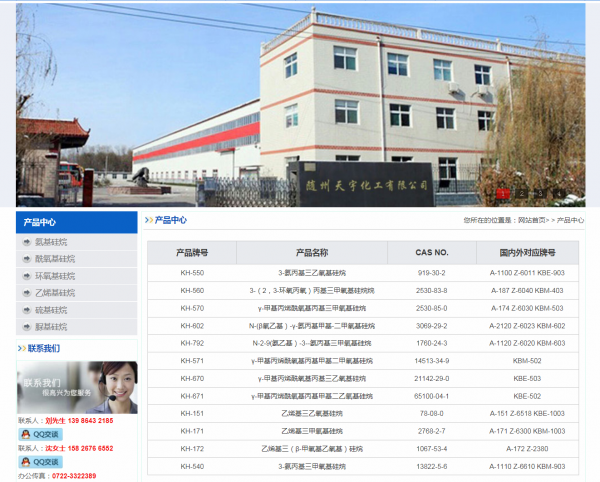 公司現(xiàn)有員工100多人,其中具有高級技術職稱的科研管理人員15人,同時還擁有來自大專院校從事化工、化學研究、開發(fā)及管理的技術人才。多年來,公司與武大等著名高校有關專家進行技術合作,共同開發(fā)新產(chǎn)品,以滿足市場需求。公司占地20000平方米,擁有固定資產(chǎn)1000萬元。公司主營產(chǎn)品:硅烷偶聯(lián)劑系列產(chǎn)品KH-550、KH-560、KH-570、KH-602、KH-792、KH-540、SI-402、長效硅烷等。年產(chǎn)量2000T,產(chǎn)值6000萬元,產(chǎn)品在國內(nèi)得到眾多廠家的使用和贊譽,同全國二十幾個省、市、自治區(qū)的客戶建立了牢固的合作伙伴關系;并遠銷歐、美、日、韓等國家。
