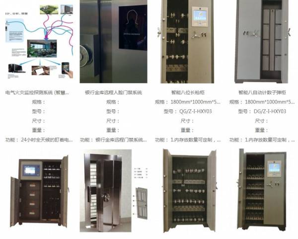 主要設(shè)備:數(shù)控液壓沖床、數(shù)控折彎機(jī)、數(shù)控剪板機(jī)、數(shù)控萬能銑床、數(shù)控點焊機(jī)、進(jìn)口靜電噴涂生產(chǎn)線。主要產(chǎn)品:智能槍彈保險柜、智能槍庫專用門、生物指紋聯(lián)網(wǎng)保險柜、生物指紋聯(lián)網(wǎng)提款箱、銀行設(shè)備大型聯(lián)網(wǎng)管理系統(tǒng)、礦山炸藥庫、金庫房、金庫門、ATM機(jī)銀行專用守護(hù)神、電器安全智能預(yù)警系統(tǒng)、監(jiān)控、遠(yuǎn)程監(jiān)控聯(lián)網(wǎng)系統(tǒng)、安防器材、鈔票清分機(jī)、防盜報警器、點鈔機(jī)、警用裝備、防彈衣、防彈頭盔、銀行珠寶箱、檔案密集架、信號屏蔽儀、計算機(jī)軟件開發(fā)、智能鎖具研發(fā)、生產(chǎn)、銷售等產(chǎn)品。